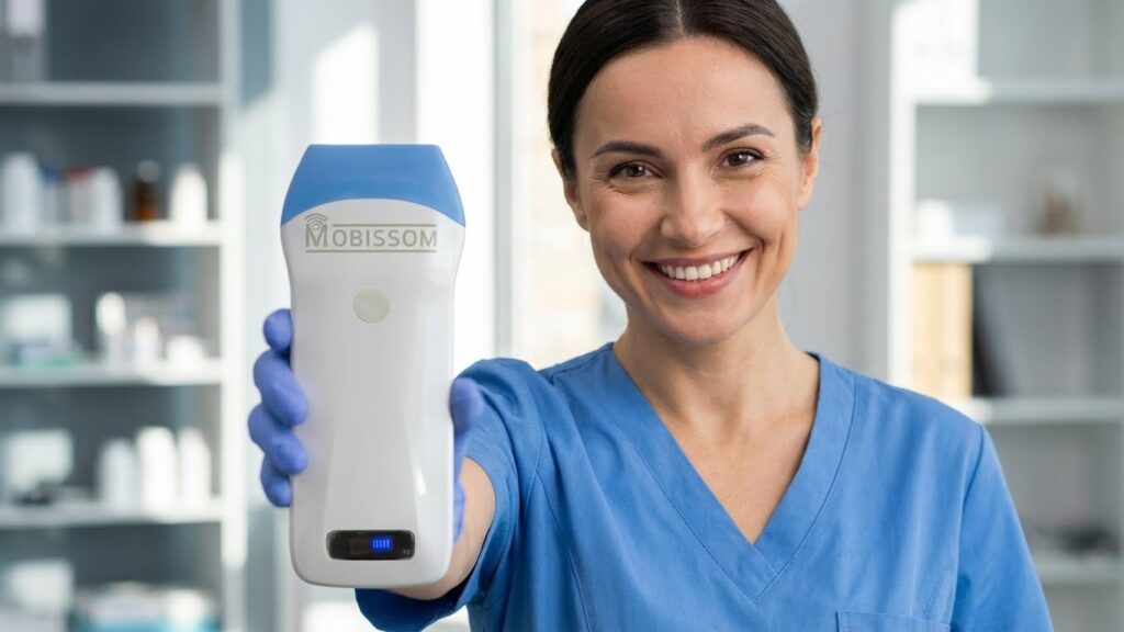 Com apenas 240g, sem fio, e com longa duração de bateria, o Mobissom/Clarius é o menor e mais completo ultrassom ultra portátil do mercado.